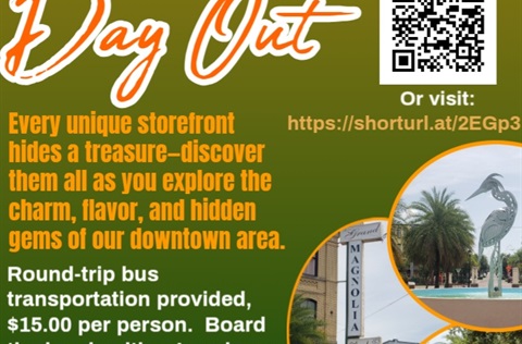 Eustis Day Out 28 Oct 2025 Spend a day in Eustis and experience the unique charm and flavors our waterfront city has to offer. Board a charter bus in either Leesburg or The Villages and join us on Tuesday, Oct. 28 from 10 a.m. - 3:30 p.m. for an afternoon in Eustis. Tagged as: , Community events & fundraisers, Kids & family